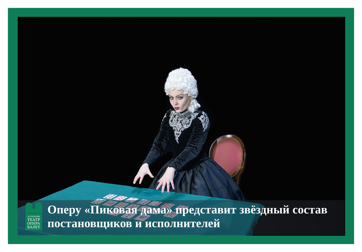 Предстоящая премьера оперы «Пиковая дама» в Астраханском государственном театре Оперы и Балета готовит немало сюрпризов. Новые решения адресованы зрителям самых разных категорий: от любителей захватывающих историй, до искушённых знатоков музыки и либретто оперы. Мистическая история трёх карт, призраки, гибель героев, новые смысловые акценты, утонченный, эфирный образ Петербурга — никого не оставят равнодушным. В течение трёх дней: 27, 28 февраля и 1 марта на Большой сцене театра выступят приглашённые солисты Большого и Мариинского театров, Московского Академического театра им. К.С. Станиславского и В.И. Немировича-Данченко. Герман - Кирилл Матвеев — солист Московского Академического Музыкального театра им. К.С. Станиславского и В.И. Немировича-Данченко (г. Москва). Сергей Поляков — солист Государственного Академического Большого театр России (г. Москва). Лиза - Евгения Муравьёва — солистка Мариинского театра (г. Санкт-Петербург). Граф Томский - Евгений Никитин — солист Мариинского т