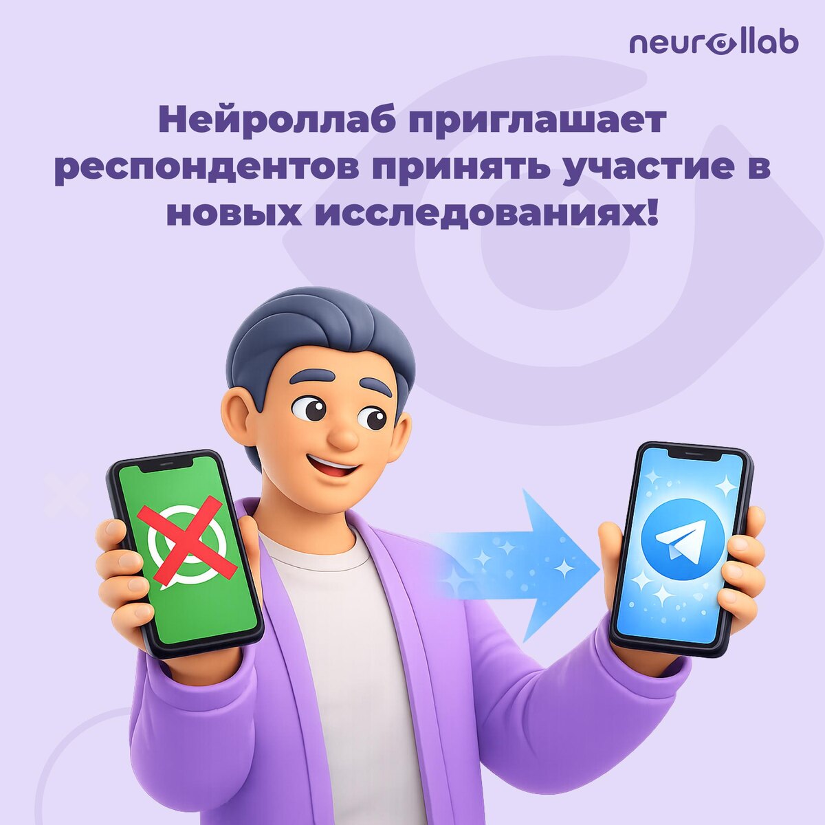 При открытии записи мы сможем направить вам приглашение через Telegram-бот: @Neurollab_bot. Обращаем внимание, что коммуникация и запись на исследование через WhatsApp больше не ведется! Если вы хотите получать приглашения, заполните анкету в Telegram-боте: @Neurollab_bot Также доступна запись на сайте: neurollab.ru. Ваш вклад в науку очень важен для нас! Спасибо, что остаётесь с нами! 💜