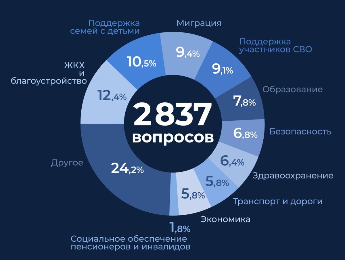 Михаил Мишустин выступит в Госдуме 25 февраля с ежегодным отчетом правительства за 2025 год. В тройку вопросов от россиян, которые уже начала собирать нижняя палата парламента, вошла и миграция (9,4%). Ее опережает ЖКХ и благоустройство (12,4% вопросов), а также поддержка семей с детьми (10,5%). «Мигранты! 90% подписчиков пишут что надо с ними что-то решать! Визовый режим, ужесточение режима нахождения. Целевой приезд. Заключил контракт на год, отработал и домой...», - гласит одно из сообщений под постом спикера Госдумы Вячеслава Володина в Телеграм. За неделю от россиян поступило 2 837 вопросов. Подробности – на сайте «НацАкцент» Фото: ТГ-канал Вячеслава Володина 📰 Подписывайтесь TG | VK | Дзен | ОК