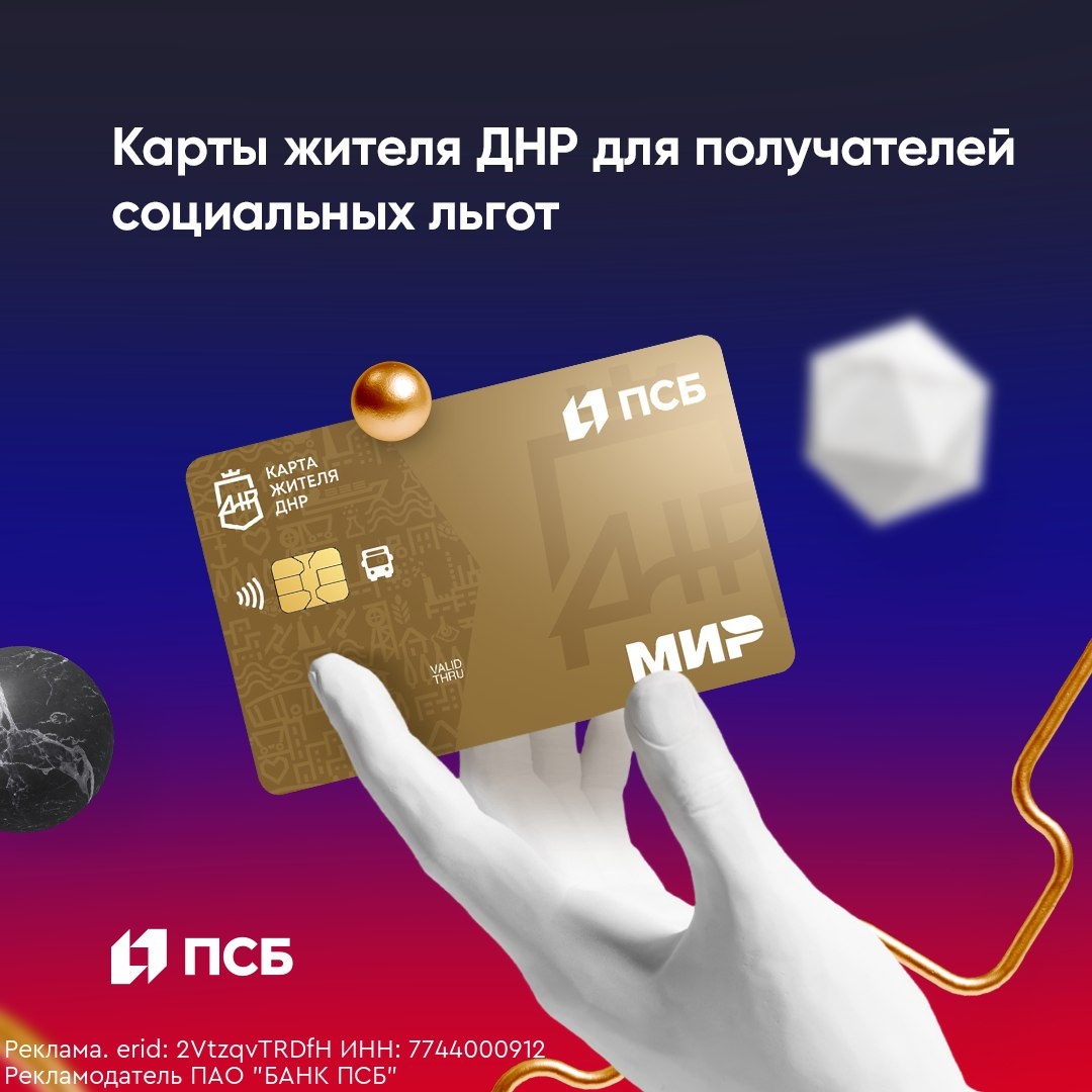 ПСБ совместно с Правительством ДНР и техническим оператором проекта ООО «Альпика» запустил выпуск золотой «Карты жителя ДНР». На базе платежной системы «Мир» она объединяет социальные и банковские возможности. 🔸 В первую очередь золотая карта даёт право на льготный проезд в общественном транспорте школьникам и студентам из многодетных семей, детям-сиротам и детям, оставшимся без попечения родителей. Использовать её просто: достаточно приложить к валидатору в автобусе или электротранспорте. Система определяет льготу автоматически. На первом этапе они будут доступны жителям Волновахского района. Позднее проект будет масштабирован на всю республику.