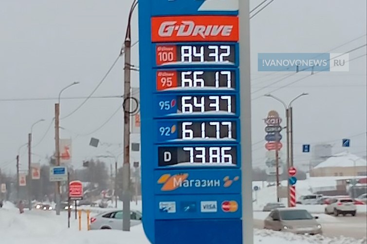 С 3 по 9 февраля в 61 регионе страны повысились цены на бензин. Больше всего — в Ивановской области: на 0,7%, сообщает Росстат. В Москве бензин подорожал на 0,4%. В 9 регионах цены снизились, особенно в Ямало-Ненецком АО (-1,8%) и Республике Дагестан (-1,5%). Сегодня, 12 февраля, высокооктановую марку бензина на ивановских заправках «Газпромнефти» продают по 64,37 рублей за литр. АИ-92 стоит 61,77 рублей. Дизель — 73,86 рублей.