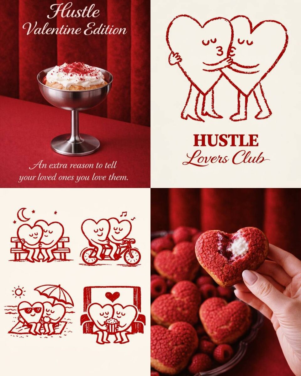 День Святого Валентина в Hustle 💘 Ребята подготовили спешл с подарком для парочек,и не только: ▶️ шу с малиновой начинкой и нежнейшим сливочным кремом; ▶️ авторский тирамису «Малина‑кофе»; ▶️ коктейль «FIRST KISS»; ▶️ коктейль «SMALL TALK» с ежевичными нотками. И самое приятное: при покупке полного сета дарят игру «100 вопросов»🫰🏾 Спешл стартует сегодня, а 13/14/15 фотографируют всех на плёнку — потом проявят и покажут (будет красиво). 📍Почаинская 17а