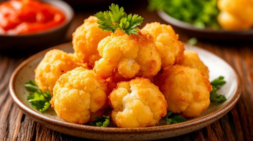 Цветная капуста, приготовленная в хрустящем кляре, может легко поспорить по вкусу с шашлыком и при этом делается из простых и доступных продуктов. Это блюдо отлично подходит и для семейного обеда, и для праздничного стола, особенно если подать его с ароматным чесночным соусом. Ингредиенты: Для чесночного соуса: Подготовка капусты Цветную капусту промойте и удалите крупную кочерыжку, если используете целый кочан. Разберите свежую капусту на отдельные соцветия примерно одного размера, крупные соцветия разрежьте пополам. Поставьте на плиту кастрюлю с водой, доведите до кипения и посолите. Опустите соцветия в кипящую воду и варите около 10 минут, ориентируясь на размер: маленькие приготовятся быстрее. Готовность проверяйте вилкой - капуста должна быть мягкой, но не разваренной. Осторожно достаньте соцветия и переложите в прохладное место, чтобы они немного остыли. Капуста должна быть теплой, а не горячей. Если используете замороженную капусту, предварительно ее разморозьте, промойте и дале