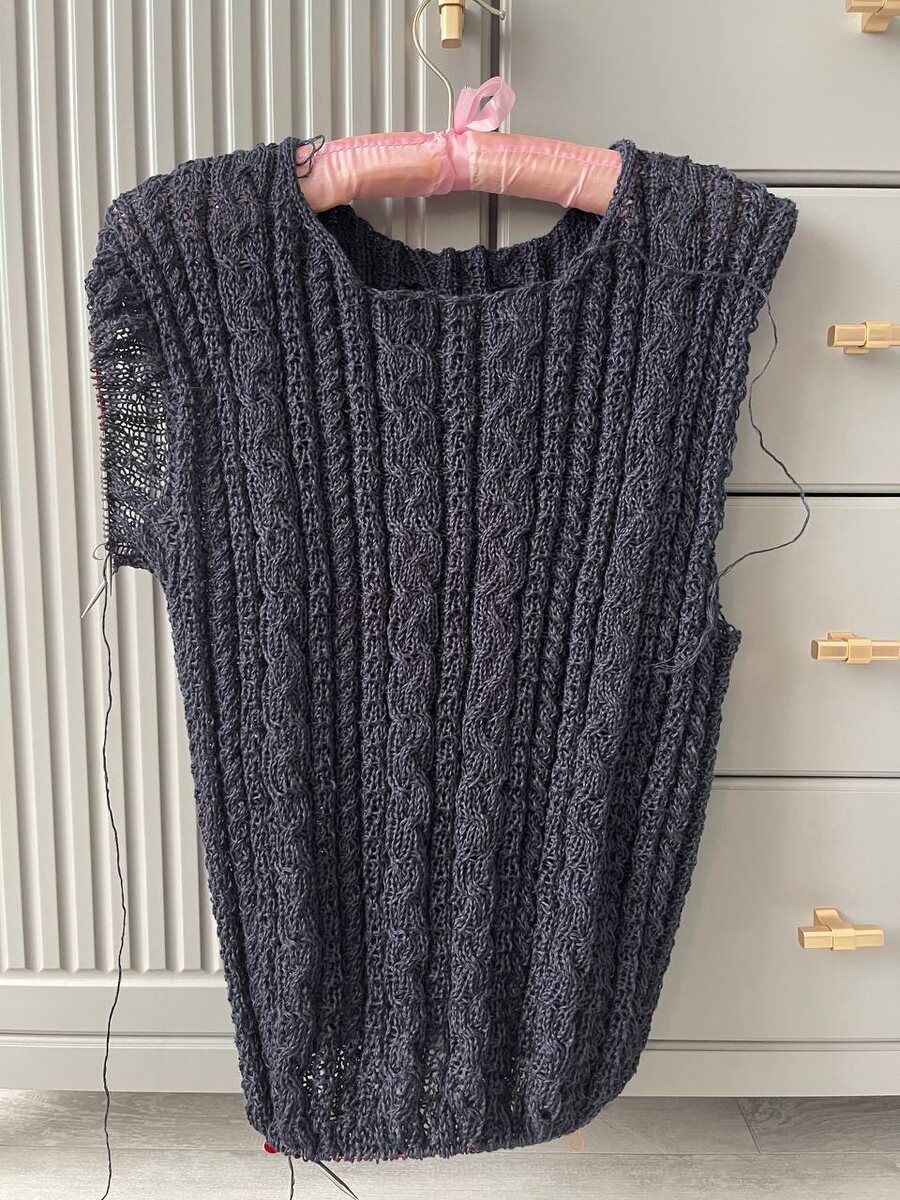 У меня иногда складывается такое чувство, что пряжа из которой я начинаю вязать, выбирает сама быть ей этой вещью или нет. Почему у меня возникла такая теория? Потому, что я покупаю пряжу под один проект, а готовое изделие из этой пряжи в дальнейшем получается совсем не то, что я из нее хотела 🤦♀️. Так и с этим льном. Кто смотрел мои видео и посты ранее могли видеть эту пряжу в уже почти готовом ажурном платье, но нет платья, оно не получилось. Зато теперь этот лен в этом джемпере, и пока мне нравится, как он вяжется, как он сидит, при чем с первого раза, без перевязов. Тьфу, тьфу, что бы не сглазить.🪬