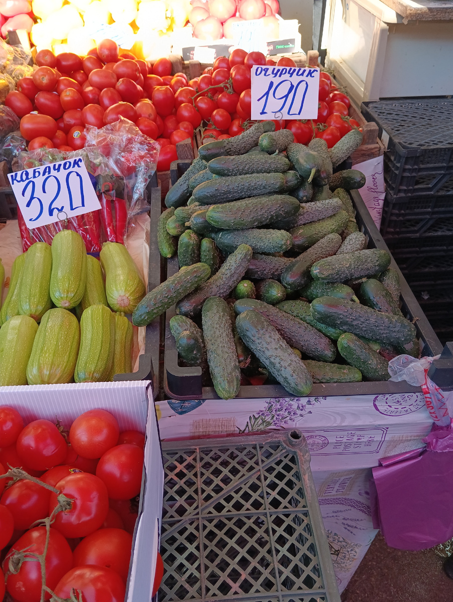 Помидоры местные по 190 руб, а азербайджанские - по 350 руб.