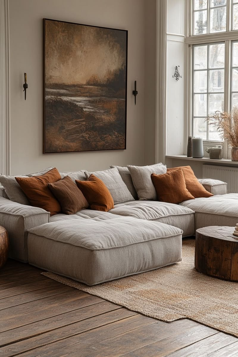 Что делать: если хотите подушки — выбирайте 2–3 качественные (с натуральными чехлами, удобные), а не 10 мелких. Или откажитесь от них совсем — диван без подушек выглядит минималистично и современно.
