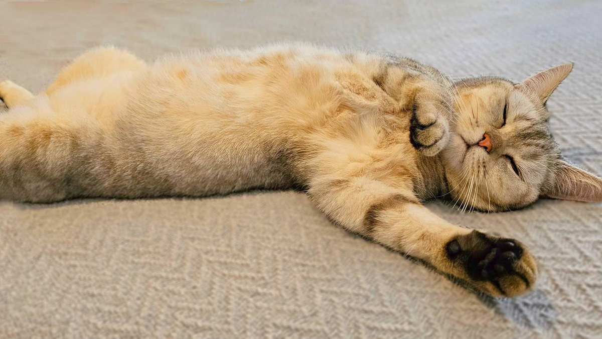Кот лежал весь день. Спал. Ждал. Мышцы затекли. Вы вернулись — наконец можно размяться. Катание = интенсивная растяжка. Спина выгибается. Скручивается. Позвоночник растягивается. Кошачья гимнастика.