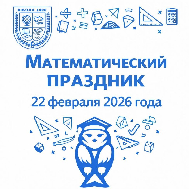 🎓 22 февраля 2026 года в Школе 1400 состоится ежегодный Математический праздник — день, когда математика становится увлекательной игрой! В программе: 🧮 математическая олимпиада для учеников 6–7 классов; 🧮весёлые математические игры, ребусы и логические загадки. Совсем скоро откроется регистрация участников ✍️ Место и время: 💎3 школьный корпус (ул, Кутузова д. 20) — 9:00-15:00 💎4 школьный корпус (ул. Говорова, д. 7) — 9:00-15:00 Следите за нашими новостями! Не упустите возможность проверить свои силы и получить удовольствие от математики! 📲 Ещё больше полезной информации — в нашем МАХ. #МатематическийПраздник #МатематическаяВертикаль #Школа1400 #ДОНМ