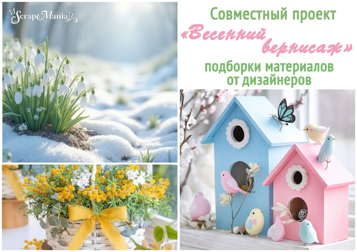 Елена Верес. Добрый день, дорогие любители совместных проектов, проводимых ТМ ScrapMania! Скоро мы встретимся с вами на нашем, ставшем уже традиционным, весеннем открыточном СП. Я начинаю подготовку к нему и подбираю красивые, нежные, цветочные коллекции разных цветов и оттенков, чтобы наш "Весенний вернисаж" заиграл всеми красками весны.