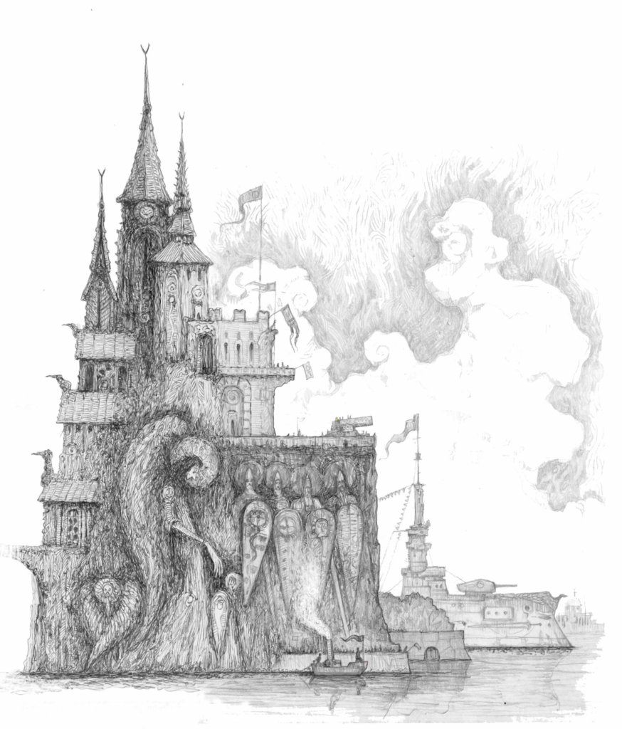 На проводы Золотого Флота в боевой поход собрался весь высший свет и начальство Ставрии — царь, князья и магнаты со своими семействами, небесное священство старой и новой веры, и высшие сановники. Ниже, на орудийном плече, стояли рыкарские бэры в ярких разноцветных камзолах, невесты-Сирены в чёрных платьях и белых широкополых шляпках с вуалями, крепостные дворяне в серых и коричневых фраках, старшие офицеры при параде, видные горожане в костюмах и шляпах, высокие чиновники в бирюзовом ставрийском сукне, жрецы новой веры в чёрных мантиях и священники старой в ярко-красных балахонах. Над толпой возвышались великанские фигуры оратайских панов в белых гвардейских мундирах, и всё это в море зелёных и бежевых (цвета сезона 911-го года) платьев, солнечных зонтиков и прощальных белых платочков, не смоченных ни единой слезинкой. Ведь что плохого может случиться с такой поражающей мощью?