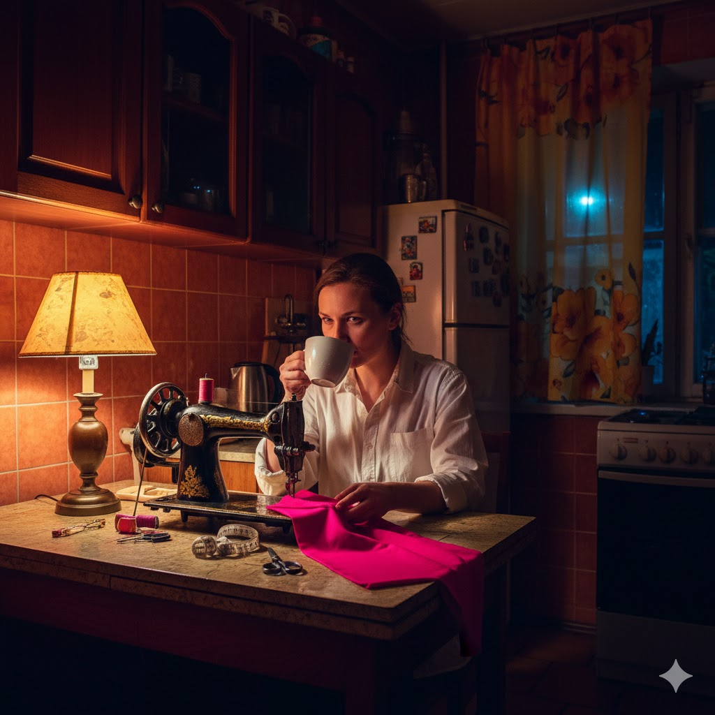 Так началась моя двойная жизнь. Днем я была примерной экономной женой, выискивающей скидки на макароны. А ночью, когда в квартире стихали шаги Олега, я уходила на кухню. Под свет маленькой настольной лампы я кроила, строчила и обрабатывала швы. Мои пальцы были исколоты иголками, а глаза слезились от напряжения, но каждый вечер я проверяла мамин баланс по телефону. Там копилась моя свобода.