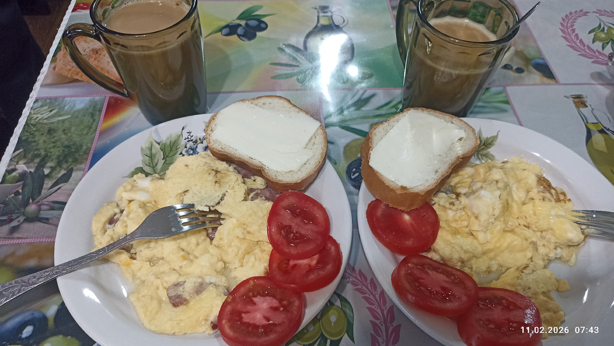 Утром омлет, в обед суп.