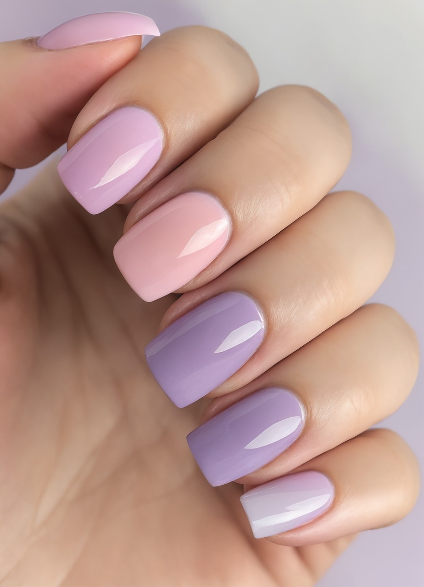 Подготовьте ногти: снимите старый лак, обработайте кутикулу и нанесите базовое покрытие. Затем выберите два или три оттенка лака, которые будут гармонировать между собой. Нанесите полоски каждого цвета на палитру или кусочек бумаги, чтобы удобно их смешивать. С помощью губки для макияжа аккуратно промокните каждую полоску, чтобы получить переходящие цвета. Прижимайте губку к ногтю, меняя угол и давление для создания мягкого градиента.