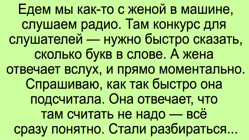 Есть особый талант — сказать или сделать что-то в совершенно обыденной манере, походя, но так, чтобы у всех округлились глаза. И кажется, некоторые члены семьи героев наших историй владеют этим талантом в совершенстве. Едем мы как-то с женой в машине, слушаем радио. Там конкурс для слушателей — нужно быстро сказать, сколько букв в слове. А жена отвечает вслух, и прямо моментально. Спрашиваю, как так быстро она подсчитала. Она отвечает, что там считать не надо — все сразу понятно. Стали разбираться. И оказалось, что она буквально просто знает, сколько букв в каждом слове. Не поверил, надиктовал ей длинное предложение. Ответила сразу. Я с карандашом пересчитал — сошлось! А потом еще и оказалось, что каждое слово для нее — своего цвета. «Еж» — сиреневый. «Забор» — серо-стальной. Позже я вычитал, что эта штука называется «синестезия» и встречается не так уж и редко. Просто жена моя думала, что у всех так, поэтому и не интересовалась этим вопросом. И только уже в почти сорок лет выяснила, ч