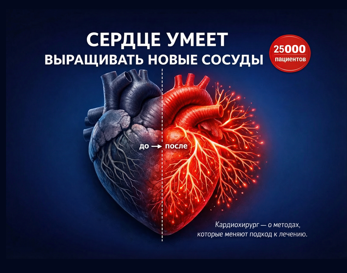 Шунтирование, стентирование - гениальные методы, спору нет. Но они убирают следствие. Обходят закупоренный сосуд, расширяют просвет. А атеросклероз? Он как шёл, так и идёт. Ему всё равно, что там хирург сделал.Я двадцать лет в профессии. А в России 75 процентов пациентов с коронарной болезнью - это осложнённые формы. Перенесённые инфаркты, кардиосклероз, сниженная сократимость. Многим из них повторно оперироваться либо нельзя, либо бессмысленно - риск перекрывает пользу. Казалось бы, тупик. Но нет. За последние лет десять-пятнадцать появилось кое-что, о чём в районных поликлиниках пока не рассказывают. Звучит как фантастика. Я и сам так думал, пока не полез в литературу и не увидел данные собственными глазами. Терапевтический ангиогенез. В Америке и Европе его называют проще - «биологическое шунтирование». Идея: не обходить забитый сосуд и не расширять его, а заставить сердечную мышцу прорастить новые. Свои, родные, живые. Не имплант. Не каркас из металла. Организм получает физический