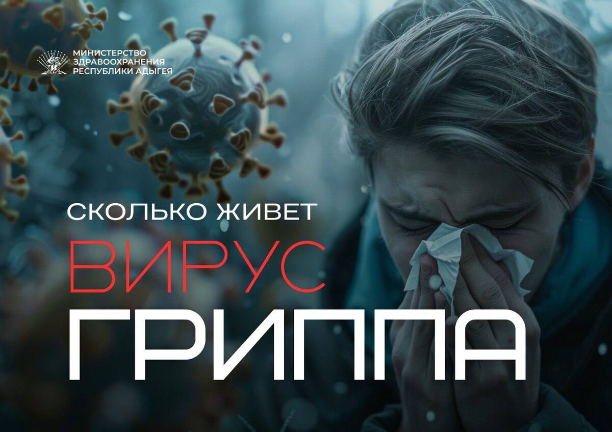 Вирусы гриппа могут жить на разных поверхностях разное время. 🟡В воздухе при температуре +22 °С от 2-9 часов 🟡На руках человека — 5 минут 🟡На металле и пластике — 48 часов 🟡В холодильнике при температуре от +2 до +4 — до 7 суток 🟡На изделиях из ткани — до 11 дней! Вирус гибнет при температуре выше +60 °С и ниже -10-15 °С Основные симптомы гриппа: ⭕повышение температуры до 39-40°C ⭕сильная головная боль ⭕мышечные и суставные боли ⭕сильная слабость и утомляемость ⭕боль в горле и сухой кашель ⭕заложенность носа и насморк ⭕желудочно-кишечные расстройства. ‼️При появлении первых симптомов гриппа не занимайтесь самолечением, оставайтесь дома и вызывайте врача. 💬Минздрав Адыгеи в МАХ