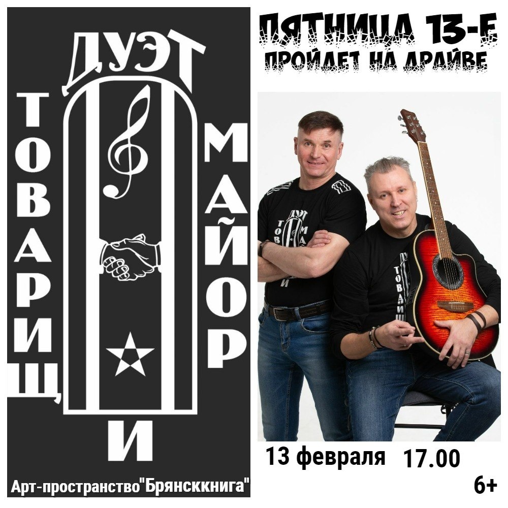 » 🔵Крутой дуэт крутых авторов дуэт Валентина Фирсова и Сергея Непши был создан в 2023 году. Уже в 2024-м он получил признание на Всероссийских фестивалях «Щит и лира» и «Милосердие белых ночей»: парни завоевали сразу два первых места! 🔜Арт-площадка «Брянсккниги» ждет всех желающих, несуеверных (и суеверных тоже) 13 февраля в 17:00. Ни одна черная кошка нам не помешает! Вход свободный 6+