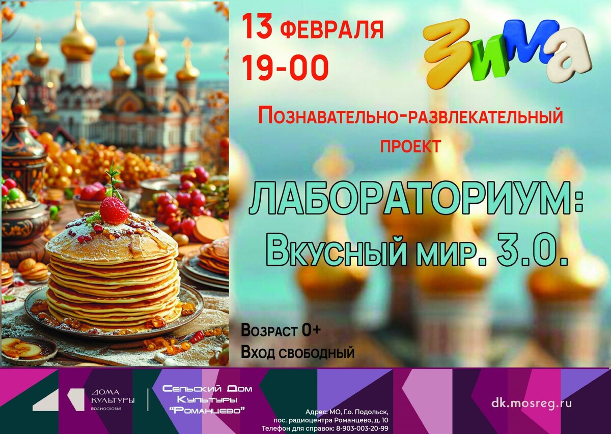 ✨ Познавательно-развлекательный проект «Лабораториум: Вкусный мир. 3.0» ❗Хотите узнать: 1. Почему сушеная рыба приобретает особый аромат и соленый вкус? 2. Как связано название пирога «шарлотка» с историей Франции XVIII века?» 3. Зачем русские хозяйки добавляют уксус или лимонный сок в картофельное пюре перед варкой картофеля? 4. Почему многие считают, что хлеб с дырочками получается лучше, чем плотный буханка? ⭐️Для вас предусмотрены создания интересных блюд 🚫 Возраст: 6+ 📆 13.02.2026 🕒 19:00 🏢 Дом культуры "Романцево" 📍 г.о. Подольск, посёлок Радиоцентра Романцево, 10 💰 Вход свободный❗️ ⭐Поддержать канал голосом 🍰Где поесть в Подольске ✅ Мероприятия Подольск https://dzen.ru/id/66ed500f7b5671493eca3fd6 http://vk.com/podolsk_events http://dzen.ru/podolsk_events