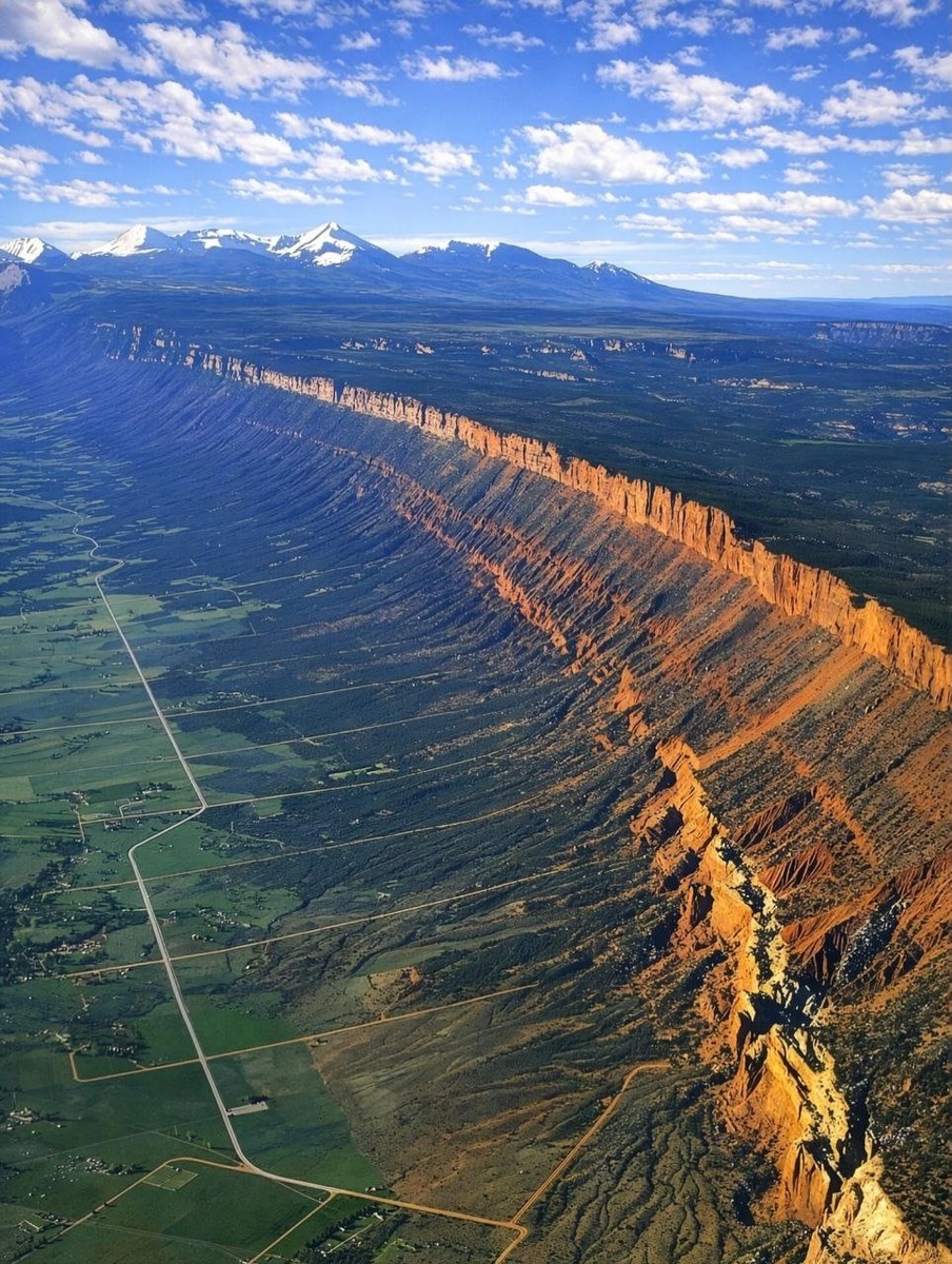 Аэрофотоснимок Дикобраза в восточной Юте раскрывает впечатляющую геологическую границу: плато Колорадо резко поднимается над долиной Касл