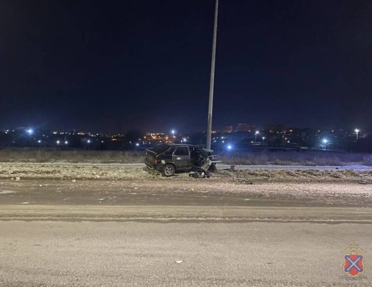 Инцидент произошел в 3.45 ночи напротив дома № 160 на ул. Ангарской Волгоград, 12 февраля 2026 / «Волга-Медиа.ру»/. 11 февраля в Дзержинском районе Волгограда зафиксировано дорожно-транспортное происшествие. 23-летний молодой человек, не имеющий права управления транспортными средствами и находящийся с признаками опьянения за рулем, не справился с управлением автомобилем ВАЗ-2114. По данным ГУ МВД России по Волгоградской области, автомобилист допустил наезд на опору линии электропередачи. В результате аварии водитель и трое его пассажиров доставлены в медицинское учреждение. Фото: ГУ МВД России по Волгоградской области.