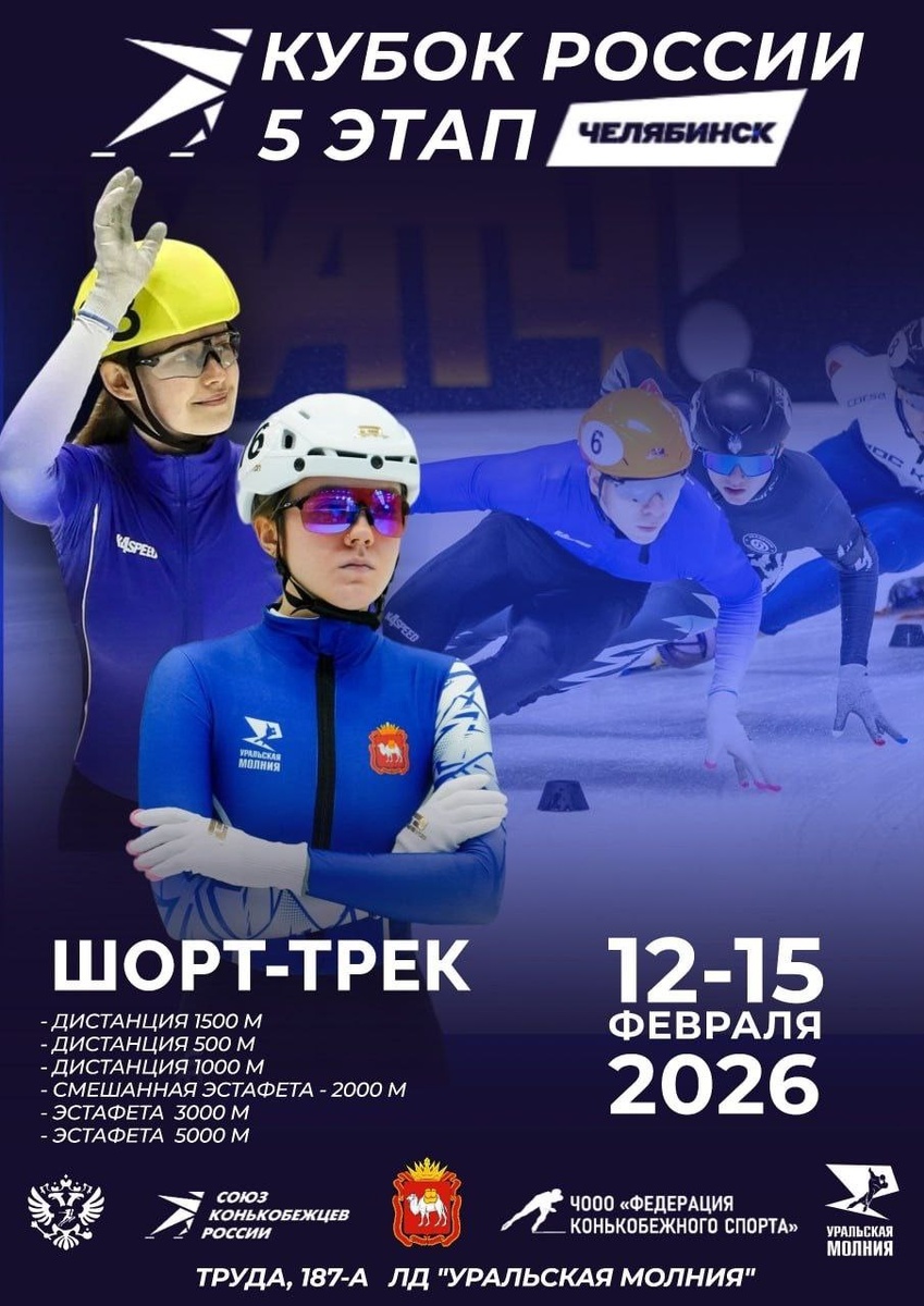 В челябинском ледовом дворце «Уральская молния» завтра, 13 февраля, стартует финальный этап Кубка России по шорт-треку. В соревнованиях выступят сильнейшие спортсмены страны, а также гости из Республики Беларусь. По итогам финала определятся обладатели общего зачета Кубка России сезона-2025/2026, сообщает управление по ФКиС администрации Челябинска. Уже сегодня, 12 февраля, участники финала Кубка России провели тренировку на льду в ЛД «Уральская молния». Завтра они выйдут на старт и разыграют первые комплекты наград на дистанции 1500 метров. Кроме того, состоятся полуфинальные забеги в мужской, женской и смешанной эстафете. Шорт-трек. Сезон-2025/2026. Кубок России. Финальный этап. ЛД «Уральская молния» (Челябинск), 13—15 февраля. Программа соревнований: 13 февраля (пятница): — дистанция 1500 м — медальные забеги; — полуфиналы смешанной эстафеты (2000 м); — полуфиналы женской эстафеты (3000 м); — полуфиналы мужской эстафеты (5000 м). 14 февраля (суббота): — дистанция 500 м — медальны