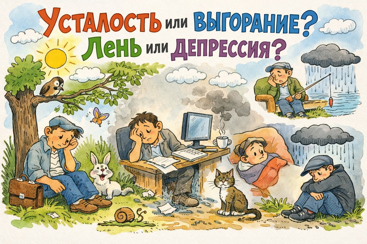 ». Иногда — «Мне просто лень». А иногда замолкает. И вот тут начинается важное. Усталость — честная. Она появляется после работы, дороги, бессонной ночи. У неё есть простое лекарство: сон, пауза, выходной. Выгорание — другое. Оно не от нагрузки, а от смысла, который долго не возвращается. Вы отдыхаете, но легче не становится. Батарейка заряжена, а устройство не включается. Лень тоже часто оболгана. Настоящая лень избирательна: не хочется именно это, но хочется другое. Депрессия же стирает «хочется» целиком. Не из-за слабости, а потому что внутренняя мотивация словно отключена. Ориентиры простые: если отдых возвращает силы — это усталость; если после отдыха пусто — возможно, выгорание; если не хочется делать что-то конкретное — это лень; если не хочется ничего и долго — стоит насторожиться. И главное: ни выгорание, ни депрессия не лечатся упрёками. Иногда человеку нужен не пинок, а пауза. И не совет, а внимательный разговор — сначала с собой. #психология