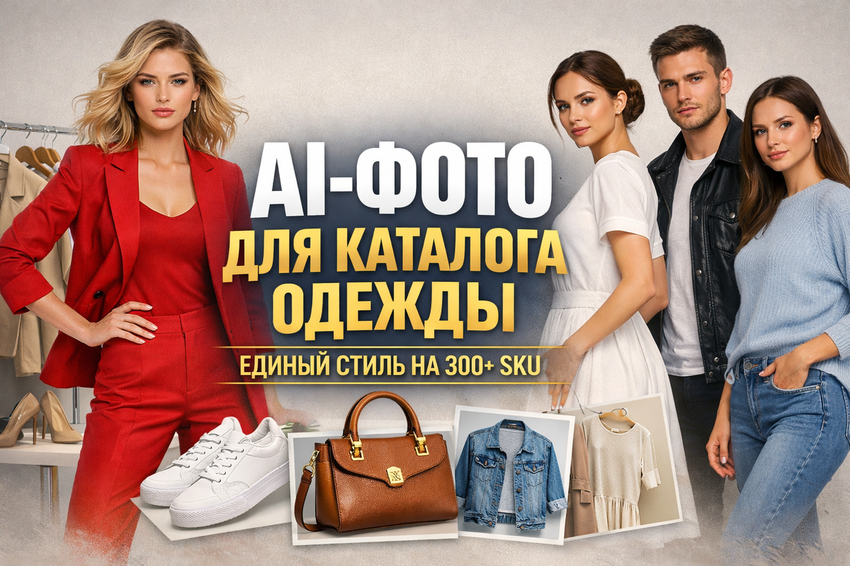 ai фото для карточки товара; нейросеть для фото одежды; единый стиль каталога 300 sku; генерация фото одежды на модели; серия ракурсов для маркетплейса