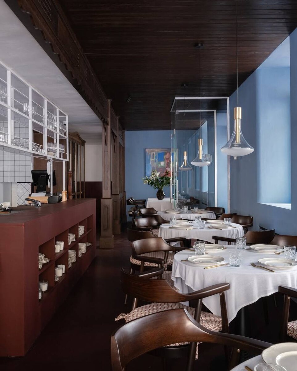 Вдохновлялись фильмом Сергея Параджанова «Цвет граната» 1969 года и улочками Тбилиси, стараясь точно передать культурный контекст. Так в пространстве появились голубые стены, белая плитка и тёплый свет.