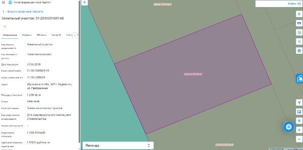 Название: Земельный участок с кадастровым номером 51:20:0001601:46 площадь 1200 по адресу Мурманская обл., МО г