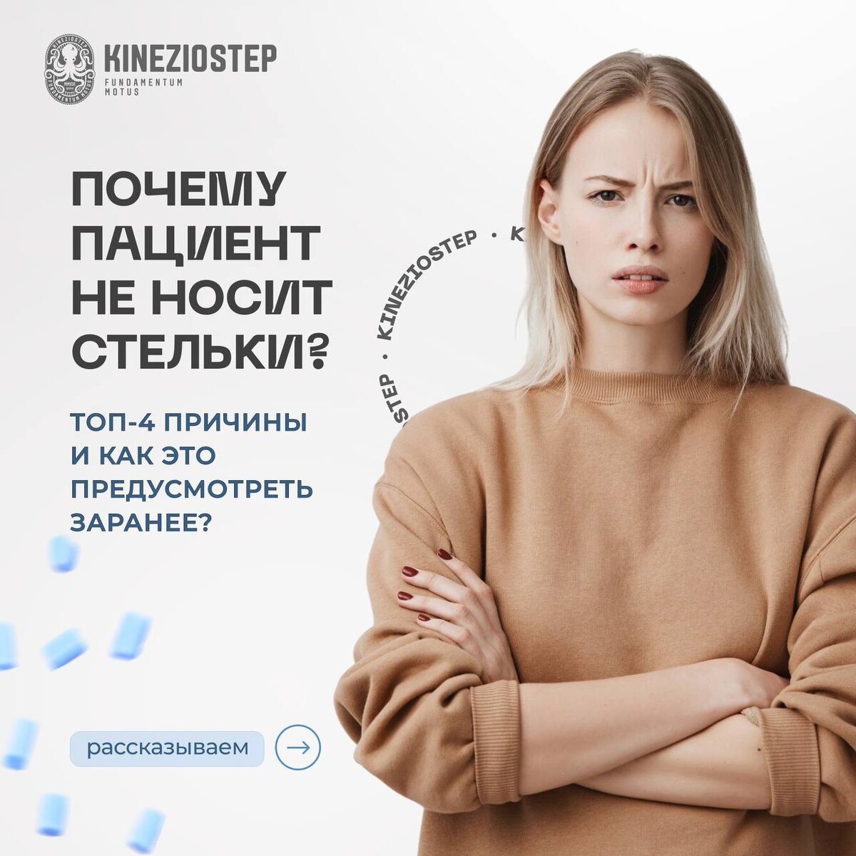 ? Топ-4 причины и как это предусмотреть заранее» Коллеги, знакомая ситуация? Вы провели диагностику, изготовили идеальные индивидуальные стельки KinezioStep, подробно всё объяснили. Пациент уходит воодушевлённый, а через месяц приходит на контрольный осмотр и признаётся: «Знаете, я их почти не носил…» И сразу возникает мысль: «Я сделал что-то не так?». Чаще всего дело не в качестве стелек и не в вашей компетенции. А в том, что на этапе консультации мы не учли «человеческий фактор». Мы собрали для вас не просто 4 самых частых причины, почему пациенты забрасывают ношение, а еще и рассказали, как это предотвратить ещё до того, как стельки попали в обувь. Сохраняйте чек-лист, чтобы возвращаться к нему при работе со сложными пациентами.
