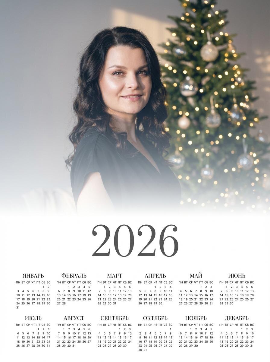 Модель: Nano Banana Сгенерировать🪄 ТЕХНИЧЕСКОЕ ЗАДАНИЕ Формат: Вертикальный постер-календарь A3/A4 Соотношение сторон: 3:4 или 2:3 Качество: Высокое разрешение для печати 🎨 КОМПОЗИЦИЯ (строгая структура сверху вниз) 1. ФОТОГРАФИЧЕСКАЯ ЧАСТЬ (верх, 50-55%) Размещение: Занимает верхнюю половину полностью, edge-to-edge Источник: Использовать загруженное исходное изображение без изменения композиции Обработка: Применить мягкую зимнюю тональность (холодный свет) Добавить едва заметную дымку/легкую матовость Натуральная цветокоррекция, никакой перенасыщенности Нижний край фото — мягкий градиентный переход к белому (без резкой границы) Важно: Фото должно заполнять всю ширину без полей, рамок и белых промежутков 2. ЦЕНТРАЛЬНЫЙ ЭЛЕМЕНТ — ГОД (разделитель) Позиция: Центрирован между фото и календарной сеткой Текст: 2026 Типографика: Тонкий элегантный serif-шрифт (например, Bodoni, Didot, Cormorant) Размер: крупный, но воздушный (не давящий) Цвет: #4A4A4A (холодный графитовый