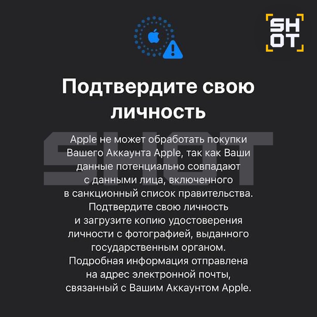 Apple начала массовую блокировку Apple ID у российских пользователей. По данным, под угрозой блокировки оказались не менее 10 тысяч человек. Причина — совпадение ФИО с лицами из санкционных списков ЕС и США. Для восстановления доступа требуется подтверждение личности и предоставление документов, однако это не гарантирует разблокировку. https://dzen.ru/id/5c0e38ff46ef5c00aaa80527