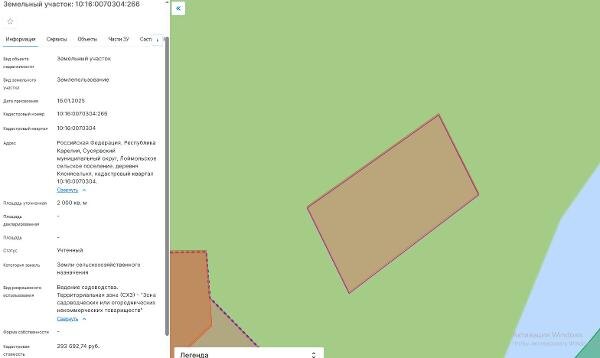 использования - Ведение садоводства. Территориальная зона -СХ1 – зона сельскохозяйственного использования. Канал: Госземля Республика Карелия Область: - Район: - Населенный пункт: - Локация: Смотреть на карте ВРИ: Ведение садоводства Кадастровый номер: 10:16:0070304:266 Кадастровая стоимость: - Вид сделки: Аренда Площадь: 2000 м² Начальная цена: 9545.00 руб. Дата завершения: 10.03.2026 Подробнее: ГИС ТОРГИ #госземля #земляотгосударства #земля #земельныйучасток #земельныеторги #торги #аукцион #арендаземли #аренда #республикакарелия