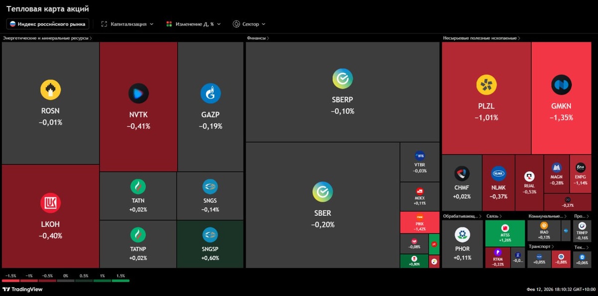 Рынок РФ, спустя час с начала основной сессии, припадает