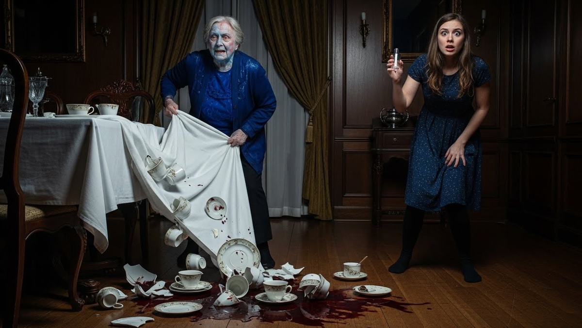 — Ты что мне дала? — хрип, вырвавшийся из горла Галины Петровны, был страшнее любого крика. Пожилая женщина вцепилась скрюченными пальцами в край скатерти, стягивая за собой дорогой фарфор. Чашка с травяным отваром опрокинулась, тёмная лужа медленно поползла к краю стола, словно венозная кровь.