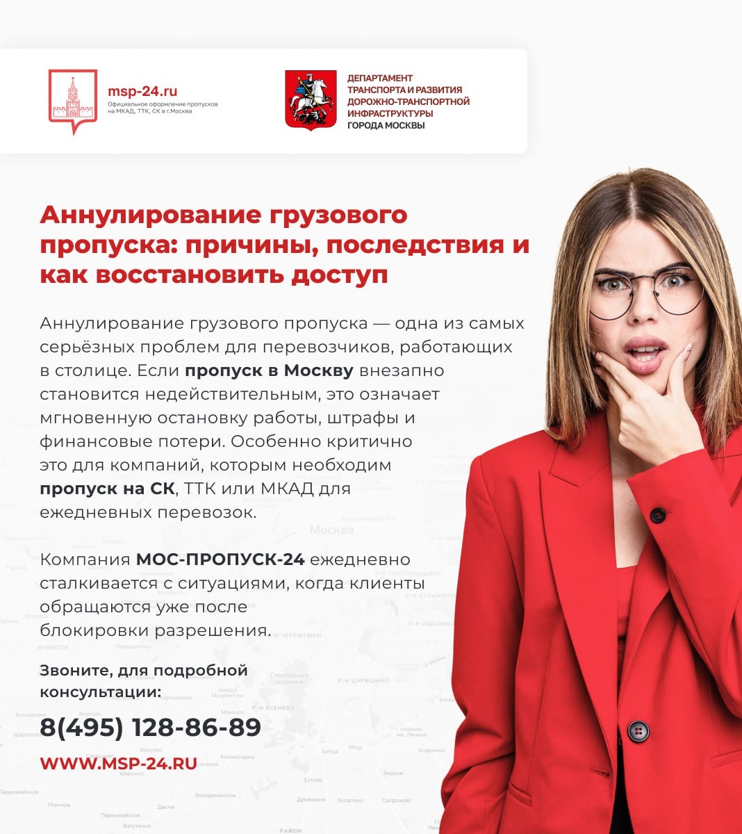 Аннулирование грузового пропуска — одна из самых серьёзных проблем для перевозчиков, работающих в столице. Если пропуск в Москву внезапно становится недействительным, это означает мгновенную остановку работы, штрафы и финансовые потери. Особенно критично это для компаний, которым необходим пропуск на СК, ТТК или МКАД для ежедневных перевозок.