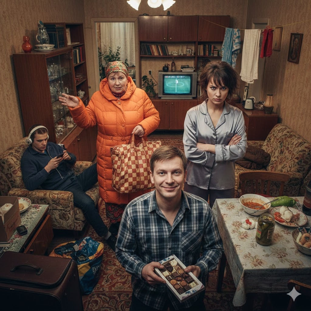 — Ой, тесновато у вас, конечно, — заявила тетя Люба, по-хозяйски заглядывая в кастрюли на плите. — Но ничего, в тесноте, да не в обиде. Мы надувной матрас с собой привезли! В коридоре положим, если что. Или Вадик на диване ляжет, а вы уж как-нибудь потеснитесь.