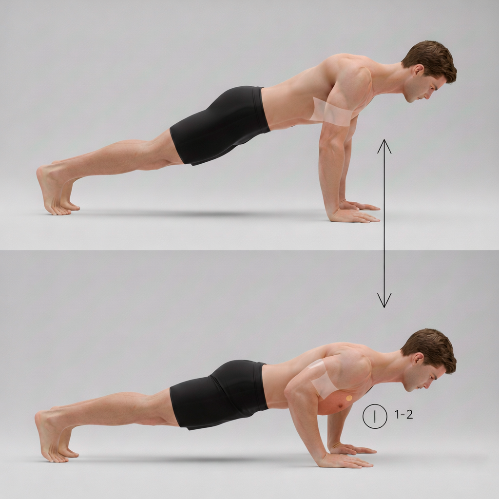 Укрепляет средний и нижний отдел грудных мышц, развивает силу без рывков, учит контролировать корпус. Подходит и новичкам, и опытным. Как выполнять: Сколько делать: