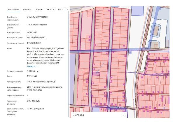 Название: земельный участок с кадастровым номером 02:39:081802:692, площадь 1500 кв.м., категория земель: земли населенных пунктов, вид