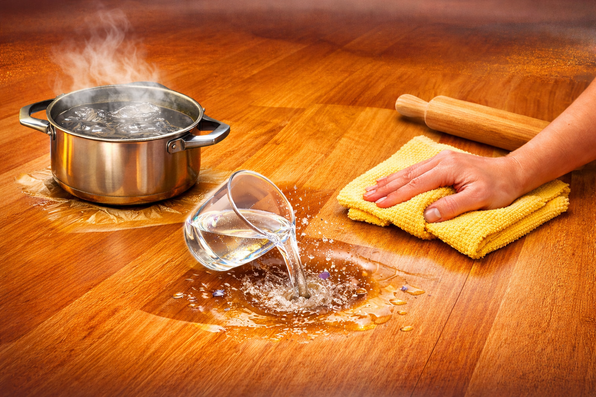 Переставили шкаф — и на полу остались вмятины. Уронили что-то тяжелое — то же самое. Линолеум запоминает такие вещи, и следы бросаются в глаза. Многие думают, что теперь только менять покрытие. Но есть способ проще и дешевле — нужна только горячая вода. Всё дело в физике материала. Линолеум — это полимер, а полимеры становятся мягкими от тепла. Прогрел, разгладил — готово. Главное не переборщить с температурой, чтобы не испортить рисунок. Лучше всего работает на свежих вмятинах, когда покрытие ещё не "запомнило" новую форму намертво. Если вмятине несколько месяцев или лет — шансы на успех ниже, но попробовать стоит. Понадобится металлическая кастрюля или миска с кипятком. Действуйте аккуратно, чтобы не обжечься — лучше надеть перчатки или использовать прихватки. Первый способ: поставьте горячую кастрюлю прямо на вмятину. Буквально через минуту линолеум станет мягким. Уберите кастрюлю и быстро разгладьте это место сухой тряпкой, надавливая от краев к центру. Можно использовать деревянну