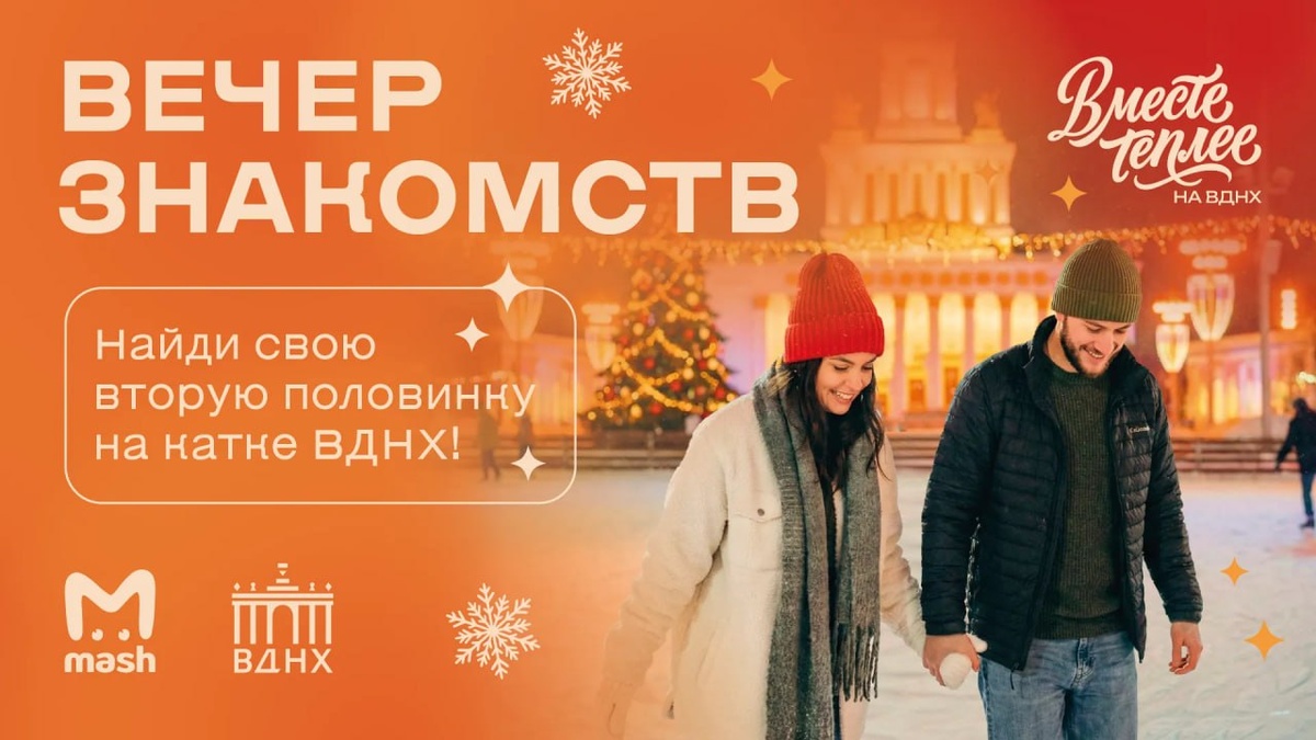 Вечер знакомств Когда: 13 февраля с 18:00 до 21:00 Где: каток ВДНХ Для тех, кто открыт для общения и хочет провести время активно и интересно, пройдет вечер знакомств «Вместе теплее». Для участия необходимо заранее зарегистрироваться: https://vdnh.ru/events/2608/ Вход участников на каток осуществляется через павильон №1 проката. Там можно получить бейдж с сердечком, внутри которого надо написать свое имя — это опознавательный знак, который показывает, что человек открыт для знакомства. Во время катания гости свободно перемещаются по катку и ищут пару с таким же бейджем. Наличие бейджа — это повод подойти, начать разговор и познакомиться. Вход на мероприятие по билетам на каток. Вечер проходит совместно с тематической программой «Тропический драйв»: музыка в стиле латина, интерактив от ведущего ... Подробнее о катке: https://www.mvexpo.ru/katok.html