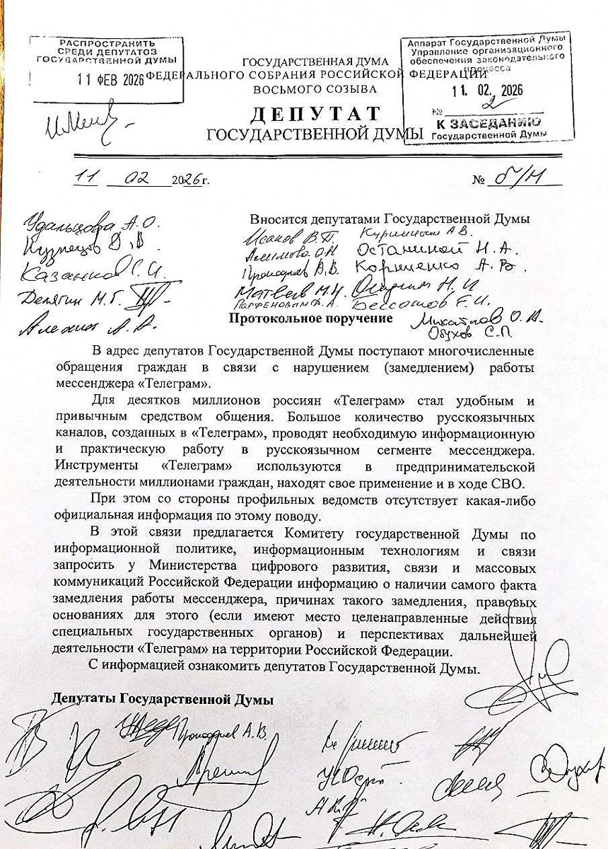 Пару слов про Telegram 2 февраля фракцией КПРФ в ГД Н.В.Коломейцев, С.П.Обухов, Д.А.Парфенов, О.Н.Алимова, М.Н.Матвеев, А.В.Корниенко, В.М.Мархаев, О.А.Михайлов, Б.О.Комоцкий, Н.А.Останина, С.Г.Левченко, Р.И.Сулейманов, Н.Н.Иванов, В.П.Исаков, П.Р.Аммосов, А.А.Алехин, А.В.Куринный внесен законопроект под названием «О внесении изменений в Федеральный закон "Об информации, информационных технологиях и о защите информации" и статью 46 Федерального закона "О связи" (о моратории на ограничение доступа к социальным сетям и мессенджерам)». Вчера ГД отклонила протокольное поручение депутата от КПРФ Алексея Владимировича Куринного (запрос подписан 15 депутатами от КПРФ и 2 депутатами от СР) к министерству цифрового развития, связи и массовых коммуникаций с запросом информации о о наличии самого факта замедления работы мессенджера, причинах такого замедления, правовых основаниях для этого (если имеют место целенаправленные действия специальных государственных органов) и перспективах дальнейшей д