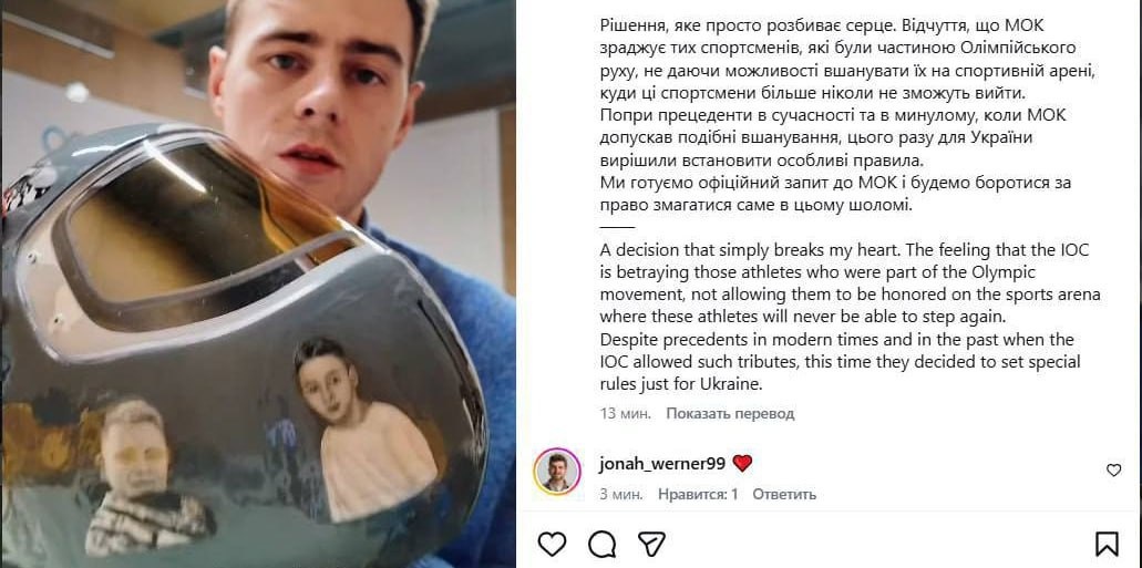 На нем Владислав Гераскевич изобразил фото погибших спортсменов, но Международный олимпийский комитет счел это за политический лозунг. Сначала атлету выдали предупреждение, но он его проигнорировал. Из-за этого его отстранили от зимних Игр-2026. ⭕️ Подписаться | Мы в MAX | Буст