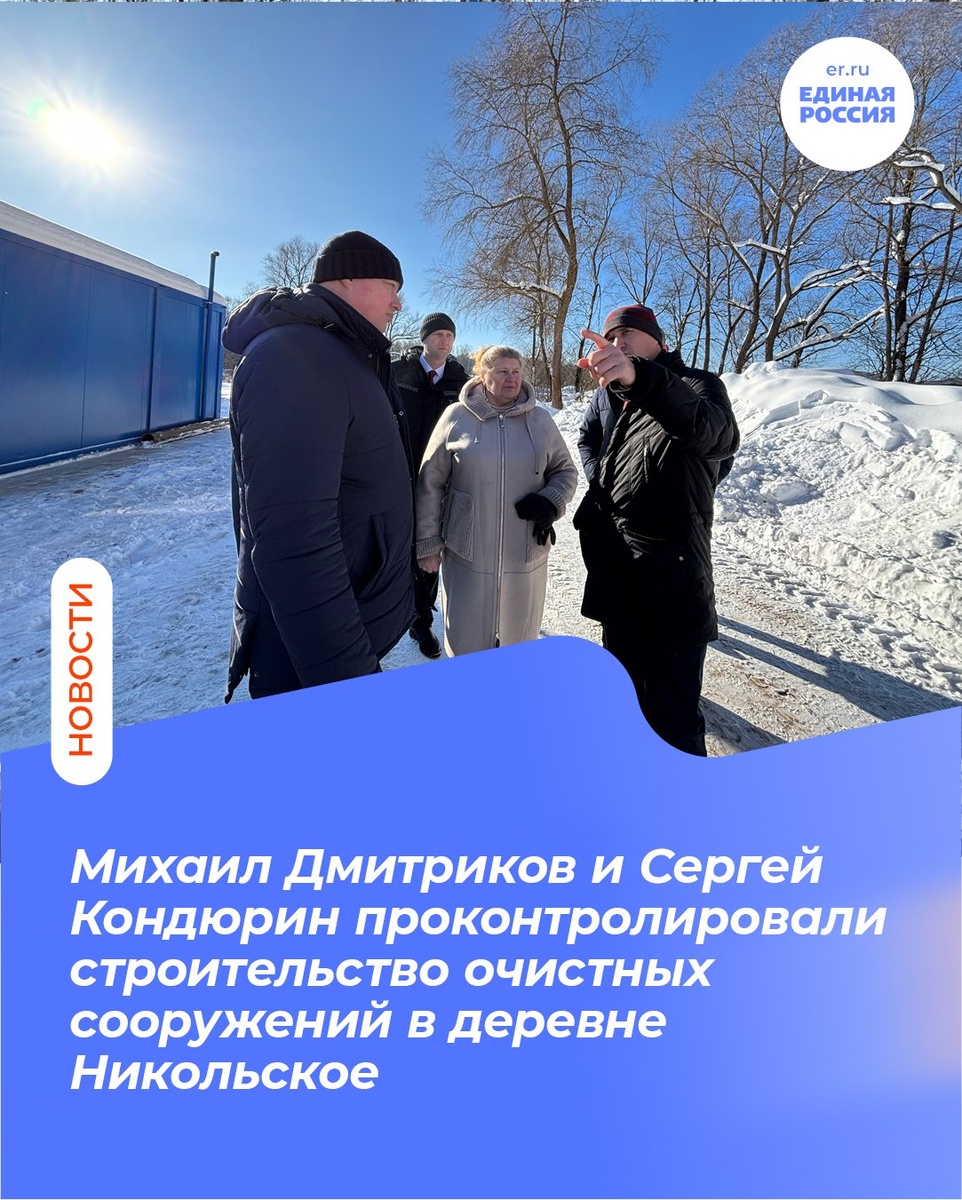 Егором Вирковым проинспектировали строительство очистных сооружений в деревне Никольское. Объект возводится по наказу жителей, включённому в Народную программу партии после обращения к председателю облпарламента Геннадию Новосельцеву. Мощность станции — около 100 кубометров в сутки. Оборудование отечественное, произведено на предприятии «Калугаоблводоканал». Технология уже доказала эффективность в Калуге. Михаил Дмитриков назвал проект пилотным для округа. Сергей Кондюрин рассказал, что работы выполнены на 80%, запуск очистных запланирован при наступлении среднесуточной температуры +5°С. Депутаты подчеркнули, что продолжат контроль за состоянием инфраструктуры округа. 👻 МАКС|💙ВК|📝ДЗЕН
