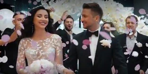 На одном из кадров Лазарев держал за руку женщину, выглядящую как настоящая невеста.