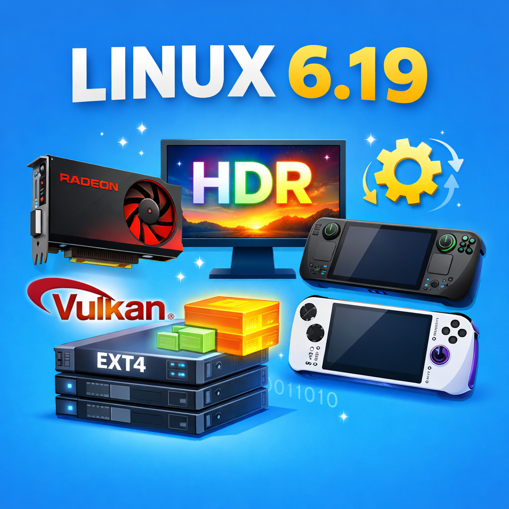 Линус Торвальдс представил Linux 6.19 — обновление ядра, которое приносит значительные улучшения для графики, файловых систем и аппаратной поддержки. Старые видеокарты AMD Radeon теперь работают на современном драйвере amdgpu, а файловая система ext4 получила возможность использования больших блоков, что повышает скорость записи и обработки данных. Linux 6.19 обеспечивает нативную поддержку Vulkan для видеокарт серии Radeon HD 7000 и R9 290. Старые карты, такие как HD 7970, R9 280 и R9 290X, получили новый драйвер amdgpu вместо устаревшего radeon. Благодаря этому улучшилась совместимость с современными игровыми слоями DXVK и Proton, а тесты показывают прирост производительности до 40% при определённых нагрузках. Новое ядро внедряет DRM Colour Pipeline API, позволяя аппаратное ускорение HDR. Обработка цветового преобразования теперь может выполняться специализированными блоками GPU, снижая нагрузку на графические ядра и экономя энергию, что особенно полезно для портативных устройств. По