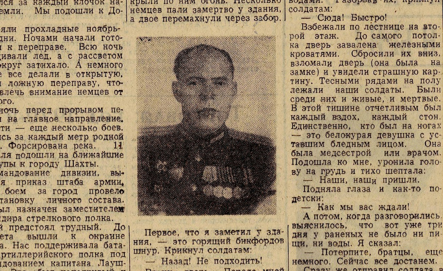 Центр хранения архивных документов в г. Шахты на своей странице в соцсети опубликовал статью из газеты «Ленинское знамя» № 30 от 12 февраля 1970 года, посвященную 27-летию освобождения города Шахты от немецко-фашистских захватчиков. В центре внимания – статья Александра Ильича Маслова, который в день освобождения города Шахты от оккупантов спас от взрыва здание школы № 2. Он делится своими воспоминаниями о том, как немцы оккупировали город, как жители боролись за выживание и как в конце концов наступило долгожданное освобождение. – В целом, это эмоциональный и трогательный рассказ о событиях тех лет, который помогает нам лучше понять, что прошли жители города Шахты в годы Великой Отечественной войны, – отметили в Центре хранения архивных документов в г. Шахты. “Это было так Наша дивизия шла из-под Сталинграда. Позади 300 километров и непрерывные бои. Особенно ожесточенными они были на рубеже соседних с Шахтами станиц. Противник сопротивлялся, бросал крупные танковые и механизированные
