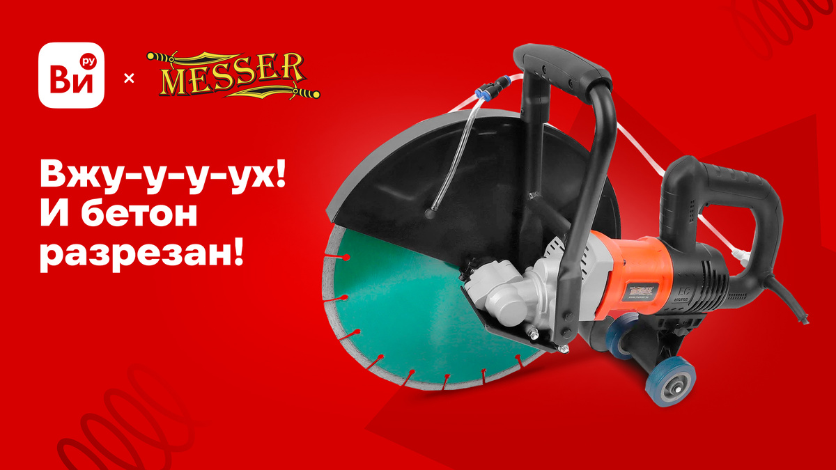 Какой инструмент справится с резкой бетона и не сломается под натиском этого твердого материала? Конечно, мощный! Такой как бетонорез MESSER 6832. Больше возможностей У инструмента мощный бесщеточный двигатель на 3 500 Вт. Что это дает? Конструкция редуктора позволила увеличить глубину реза до 155 мм при диаметре диска 350 мм. Обычно резчики с таким же диском режут на 115 – 125 мм. Электрический двигатель не создает вредных выхлопов, поэтому инструмент подходит для работы внутри помещений. Плюс такой двигатель не требует обслуживания, в отличие от бензиновых моделей. Отзывы наших покупателей подтверждают высокую производительность MESSER 6832 И сухой, и мокрый рез У инструмента есть система подачи воды в зону реза. Благодаря этому можно минимизировать количество образующейся пыли и защитить дорогостоящие диски от преждевременного износа. Нет возможности использовать воду? Можно работать в режиме сухой резки. Только в этом случае придется делать перерывы каждые 30 – 40 секунд – так диск