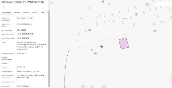 Название: Площадью 1884 кв.м., кадастровый номер 47:16:0000000:45457