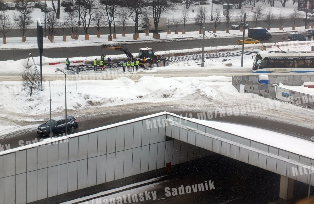 Началась укладка временного трамвайного пути над Каширским тоннелем